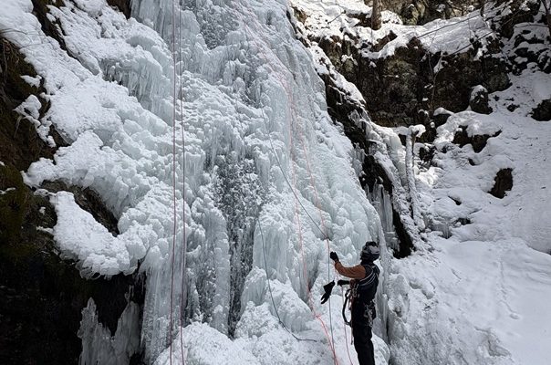 毎年シーズン初のアイスクライミングは虹の滝です
