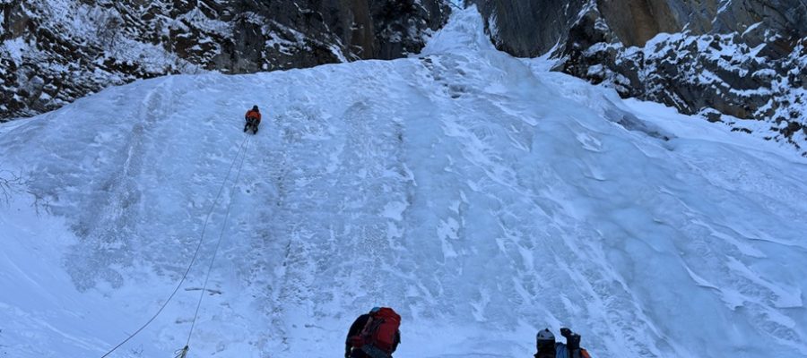 銀河の滝でアイスクライミングしました